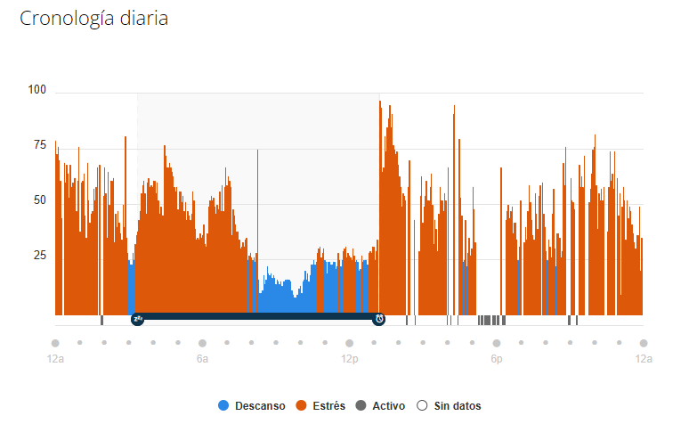 當我們睡覺時,睡眠會減少細胞發射的光子數量。休息會降低我們的呼吸和心率,正如這張使用我的智慧手錶數據的圖表所示。
